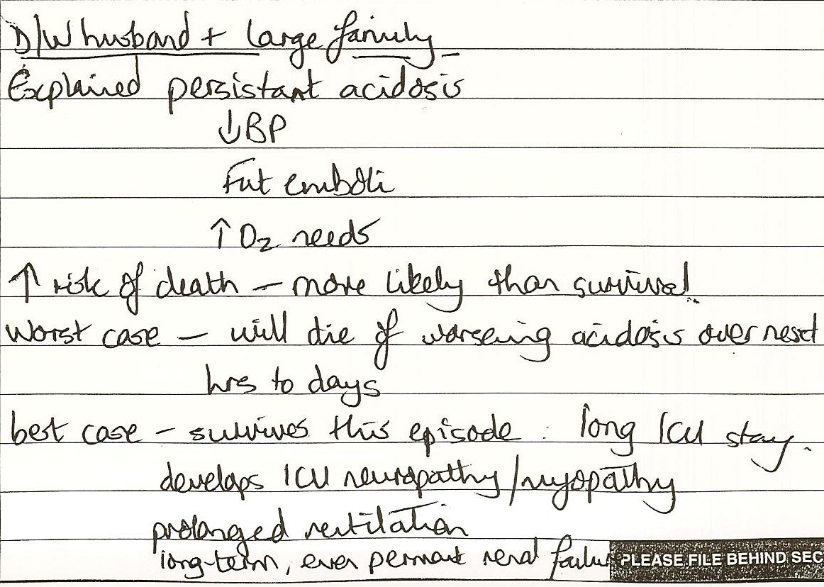“Discussed with husband and large family….. 1-Explained persistent acidosis