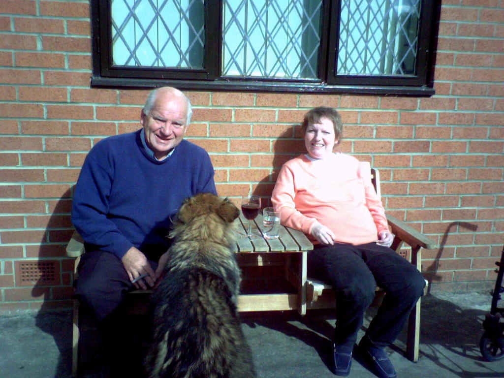 Dad and Karen sat outside chatting while Mum heated the Meat and Potato Pie up to room temperature