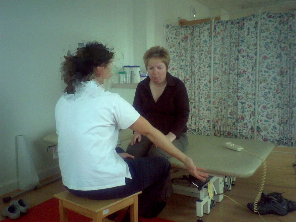 The physio demonstrated what kind of movement she was looking at achieving….
