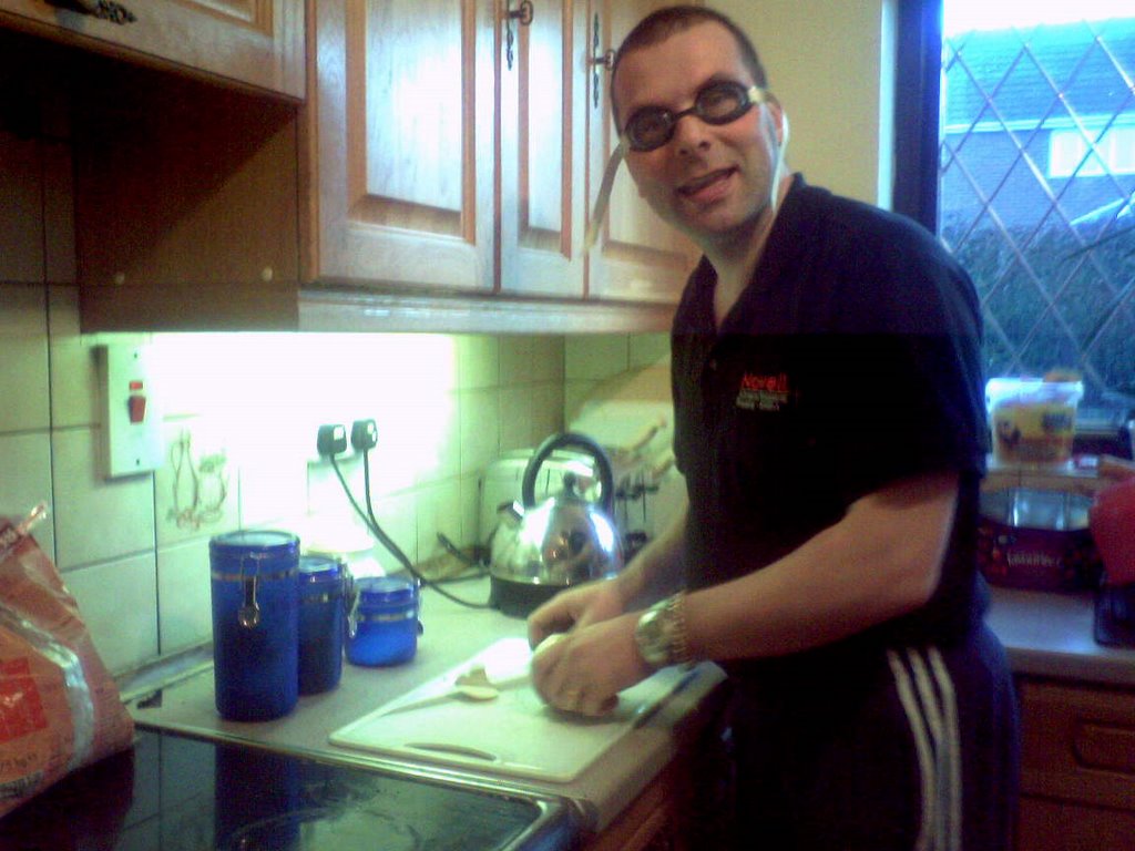 When kp awoke from her snooze, I was preparing tea. She walked in on me chopping onions, and was surprised to see me with a pair of swimming goggles on. The other day, I made 3 Lasagnes and was really crying, so I took precautions this time.