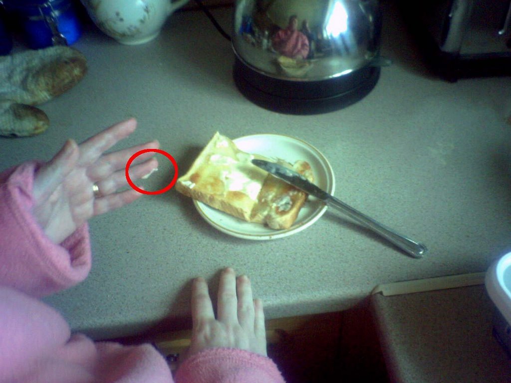 She then tried it herself. It took her a while to get the fork in the right position with her left finger on the top to give added pressure.