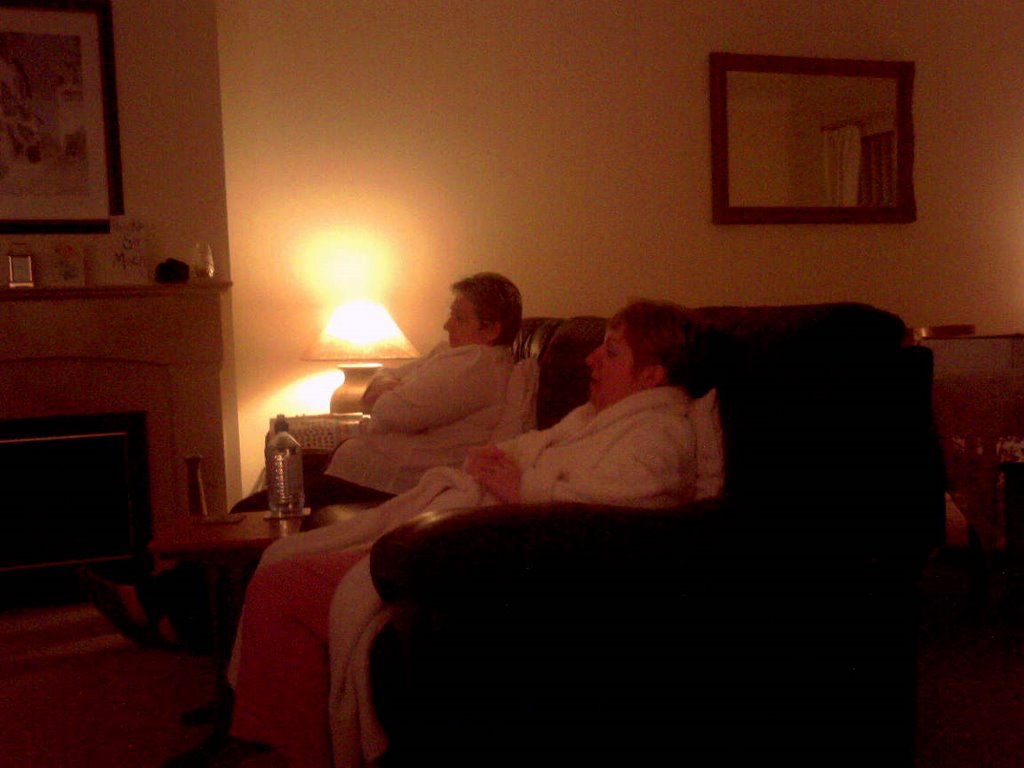 Well, last night, we were all engrossed with American Idol. Here are kp and Marie watching it, completely unaware of me taking a photo.