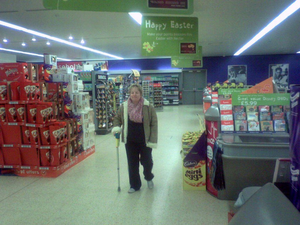With physio over, we went to Sainsbury’s shopping. Here’s kp heading to the till with an extra purchase of dishcloths.