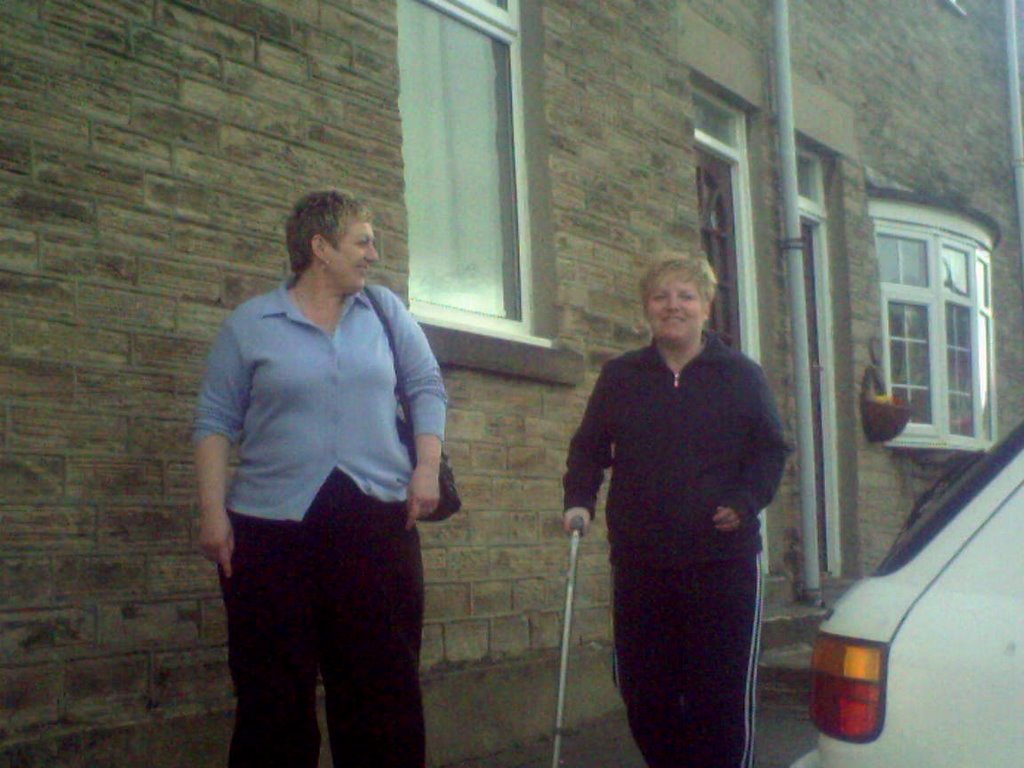Karen and Marie went to get their hair done. Here they are coming out of the hairdressers.