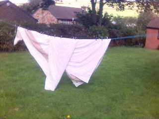 Karen was so proud she had been able to get the duvet cover on the washing line, she had texted me a photo of it.
