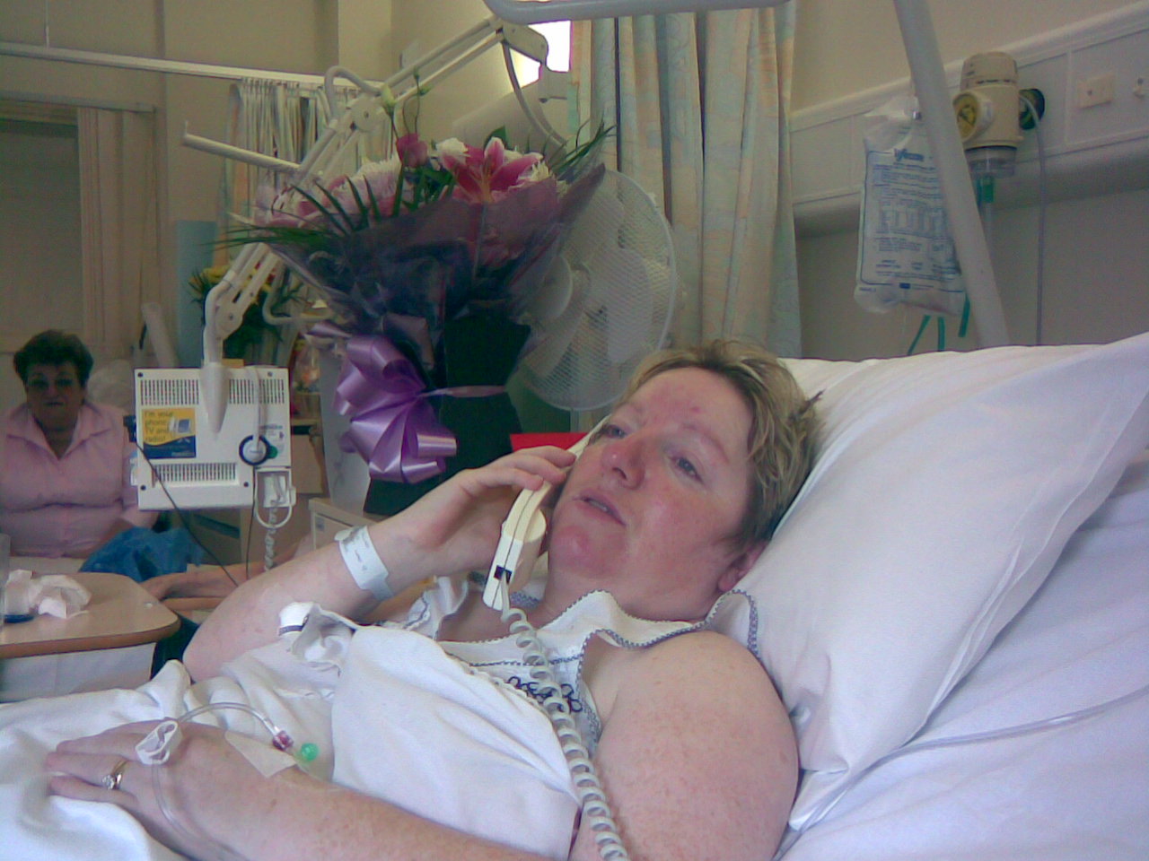 Mum/Dad/Jane – those are your flowers in the background. Susa, the address of kp at hospital is…..Karen Pollard, Ward 12, University of Durham Hospital, Durham, County Durham (thanks)