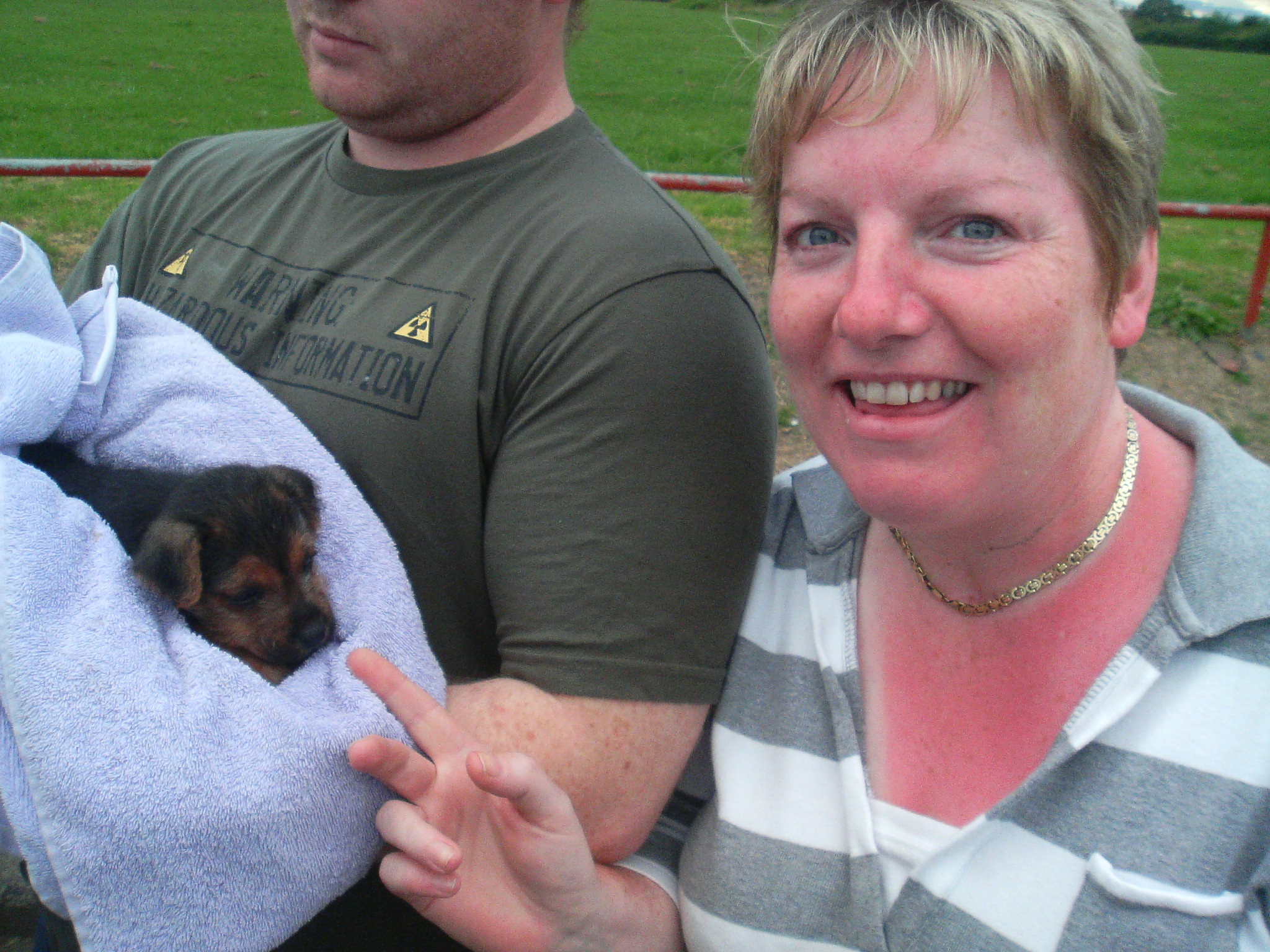 We took Adele home after the examination, and went to the chippy with the kids, popping off at Marie’s along the way. We also went to see Christopher (Karen’s nephew) as he has a new dog. Here is a photo of “Mitch” and kp…..