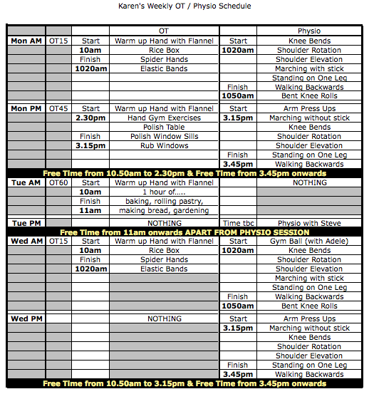 It was a very relaxing holiday. We had been given a self-help book about Post Traumatic Stress by Jane (the clinical psychologist treating kp at the moment) which made for good reading. It was quite deep at times (and too much for Karen), BUT it was really good. I underlined all the bits to read to Karen so she could see what PTSD (Post-traumatic Stress Disorder) is all about and how to treat it. So much of what kp is experiencing at the moment is mirrored in the book and we both found it really helpful to know that there were reasons for what she was experiencing.