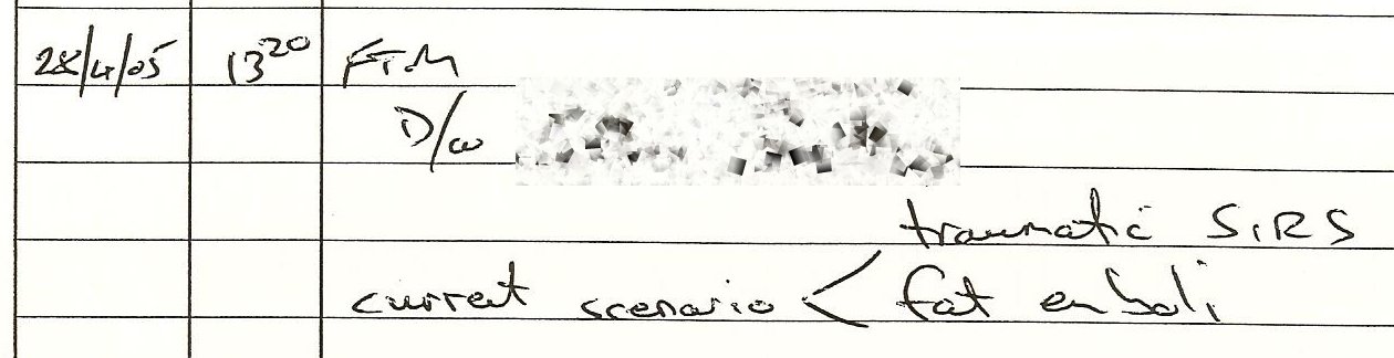 “1.20pm – Frank discussed (D/W) with [another consultant]…..traumatic SIRS”