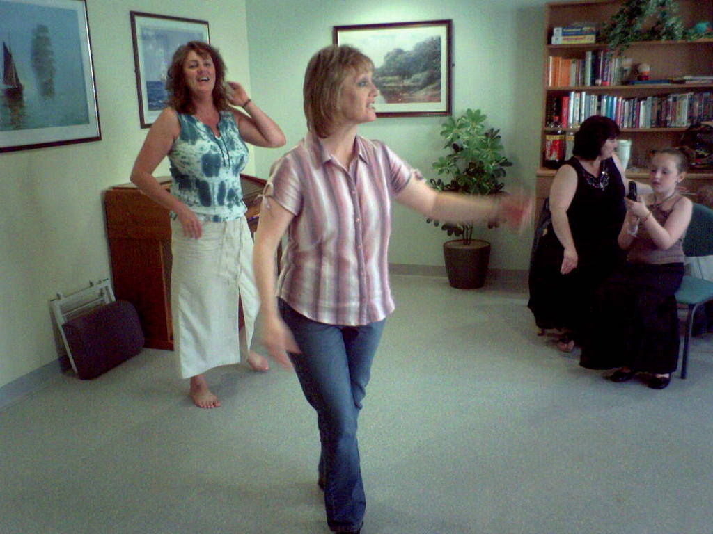 After the food, it was time for the day’s highlight, the moment we had all been looking forward to, namely Yvonne’s Salsa demonstration. kp had been in stitches when she did it in her bedroom, and we were all gagging to see Yvonne strut her stuff. UNFORTUNATELY, she wanted to change it in to a Salsa Dance Class. YIKES !!!!!!!!!!!!!! All of a sudden, everyone of us had an excuse why we couldn’t do it. Mobile phones popped out of people’s pockets to pretend we each wanted to record the event so “therefore” couldn’t be involved. Some people needed the loo, some people downright said “no” (yvonne’s son and husband initially).