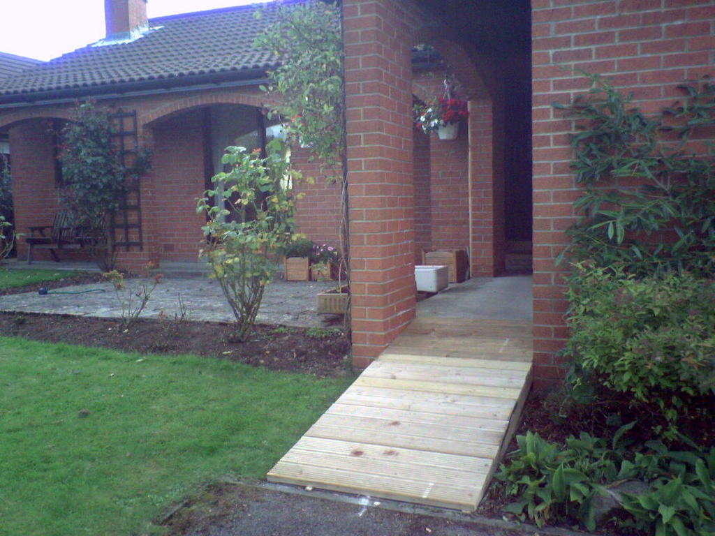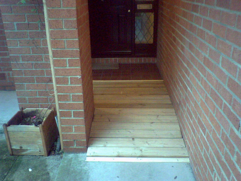 Tommy (our neighbour) had made a ramp for kp’s wheelchair. I had mentioned that she could be coming home within a few weeks and that the front two steps (very close together) would be tricky. He offered me some help making a ramp. That’s like offering a blind man a pair of glasses. DIY + dp = DeathTrap.