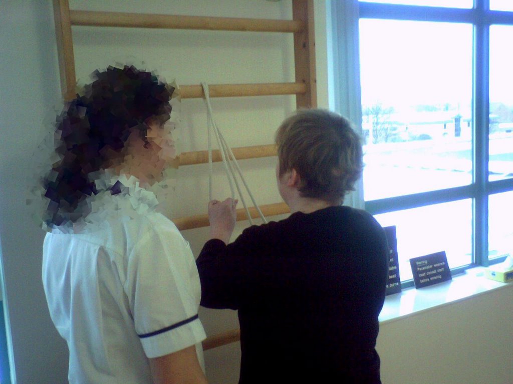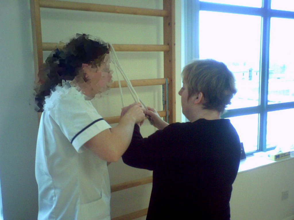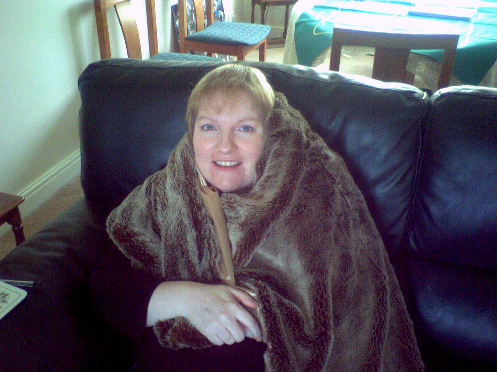 The weather outside was BITTER. It was -2′C before taking any wind into account. kp was in the wheelchair and wrapped up to the hilt with coats, scarves, hats and the added fleece Marie had got her to cover her legs.