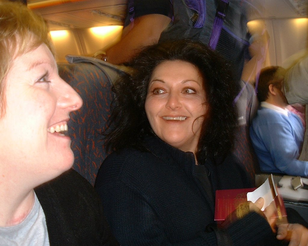 We were the first on, and got front seats. Yay ! We were very anxious at this stage, because we hadn’t seen Michelle and Freddy (Michelle’s partner). Gail, the Senior Air Crew, sensed our anxiety and kp explained all. She VERY kindly reserved 2 more front seats for Michelle and Freddy. She said she would help with the surprise by shielding us from their view. She stood in between our starboard front seats and the cabin door so anyone enetering the plane couldn’t see us.