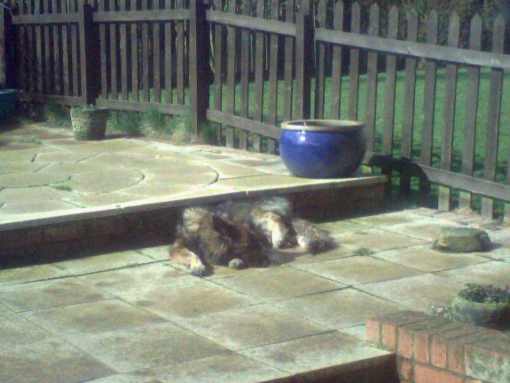 Relaxing morning. We enjoyed a cup of tea outside – lovely weather. Here is Cleo fast asleep in the back yard.