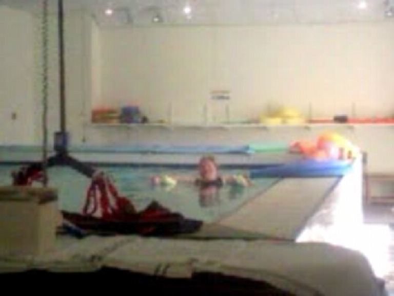 Then it was hydrotherapy time. Here is kp in the pool, not the best of photos I am afraid….