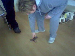 Sounds like she had a lovely lady to guide her through the moves. One of the things kp wants to be able to do, is to be able to bend down on her knees. At the moment, they don’t bend enough for that, so I think she did some exercises to help towards that.