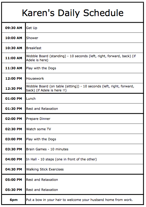 Wednesday saw the OT come. She was due to come about 6pm, but because of the traffic, didn’t get here until nearer 7pm. By 9pm, she had gone and we had a pizza tea.