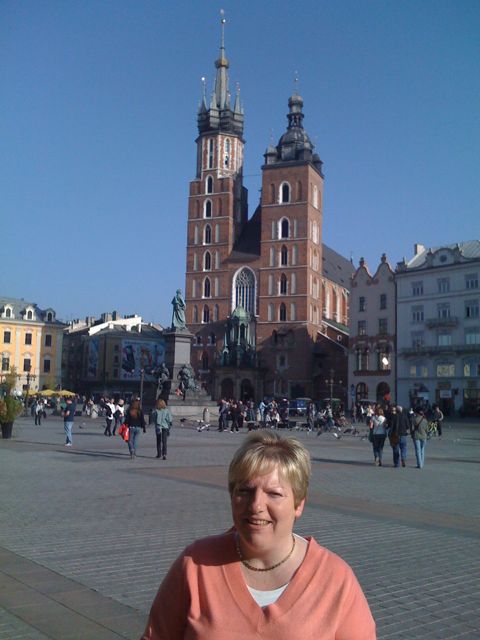 On Friday, we came to Poland for a few days. It was karen’s birthday present from me. She had always wanted to go to see the Auschwitz Concentration Camp. The hotel is lovely (radisson sas) and yesterday (saturday) we made the trip to Auschwitz and Birkenau. It was an unforgettable trip and quite moving. At the bottom of this post should be some photos. Not sure what order they will be in, but one is of Karen under the infamous “Arbeit macht frei” sign, one is of me that I took myself ‘cos Karen wasn’t there (more about that shortly) and one is of Karen next to the buildings where they housed 700-1000 prisoners in EACH building). I had told her not to smile so much but I think she took it to the extreme in that shot.