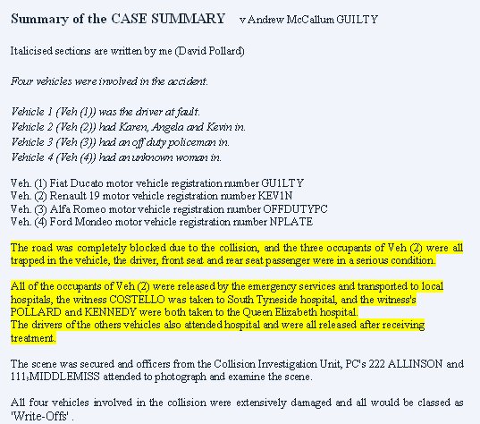 First, here is the case summary drawn up by the police to give to the prosecution against (I have called him..) Andrew Guilty.